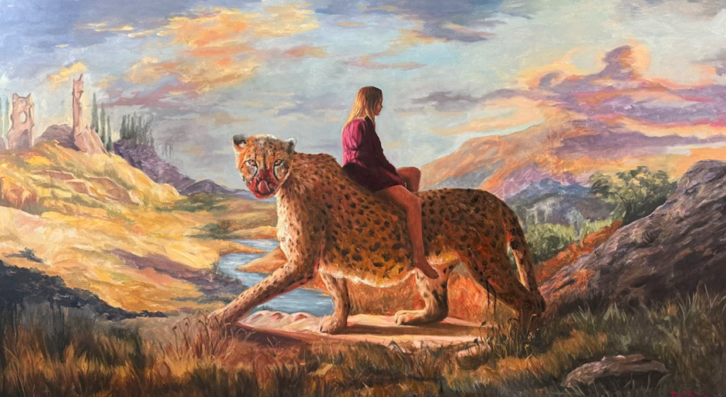 Al mismo tiempo, la muestra dialoga con la tradición del paisaje en la historia del arte, pero desde una sensibilidad contemporánea. Más que representar un entorno natural, muchas de las obras presentan el paisaje como una experiencia interior o simbólica, donde el horizonte, el cielo o la presencia animal se convierten en metáforas de lo desconocido. De este modo, un género clásico se desplaza hacia una dimensión más existencial.