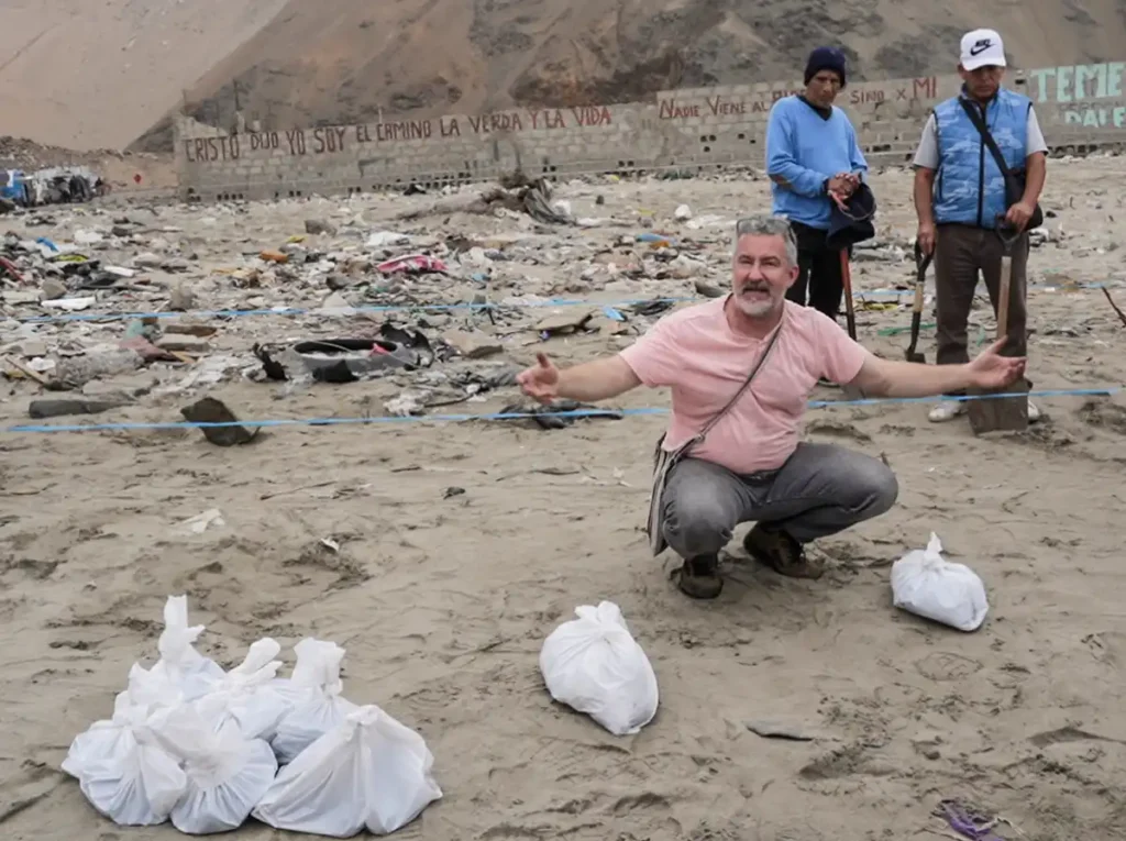 «Para la playa en la cual hemos hecho nuestro experimento, la empresa ha dicho que en 2024 han colectado 0.5 gramos de bolas de alquitrán por metro cuadrado, en toda la playa. Nosotros hemos colectado, en la parte más limpia, 16 gramos; en la parte medianamente contaminada hemos colectado más de 70 gramos por metro cuadrado, y en la parte más contaminada hemos colectado un 1.590 kilos por metro cuadrado de playa. Esto solo en 50 metros de transecto, en una playa de 600 metros, la contaminación total ese día, en esa playa, es 22 mil veces mayor que de lo que la empresa dice al gobierno haber encontrado hace dos años», explicó Austermühle.